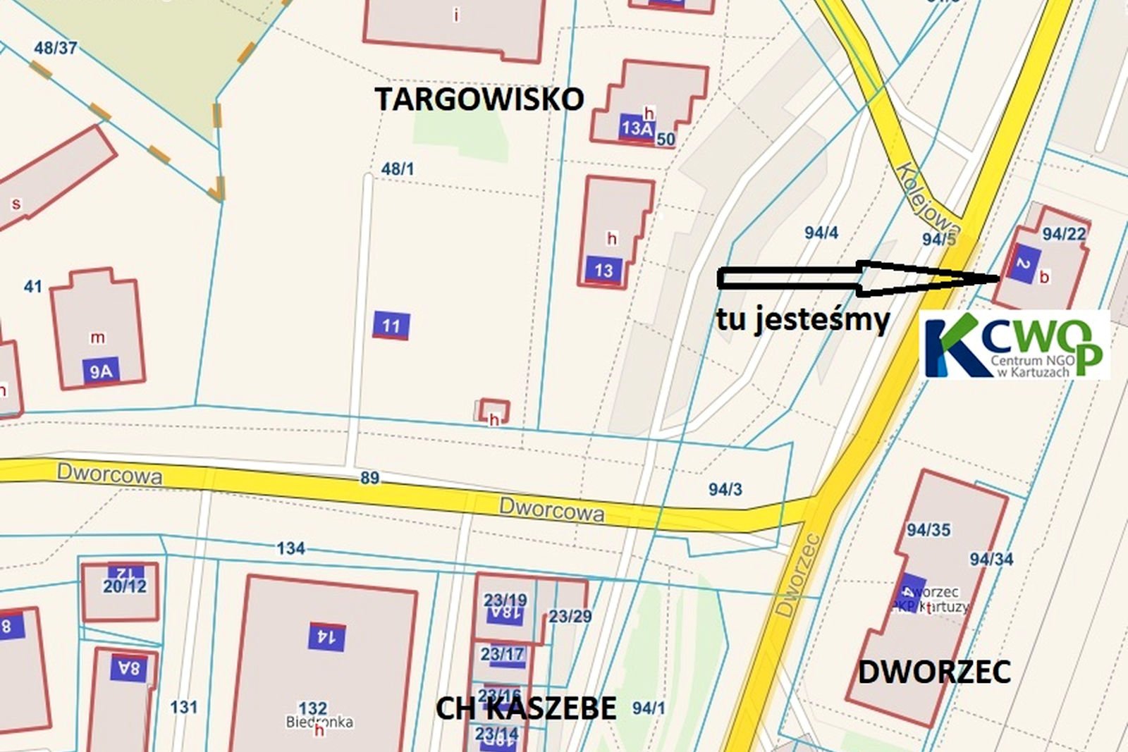 ul. Dworzec 2 w Kartuzach (budynek obok Dworca PKP).
